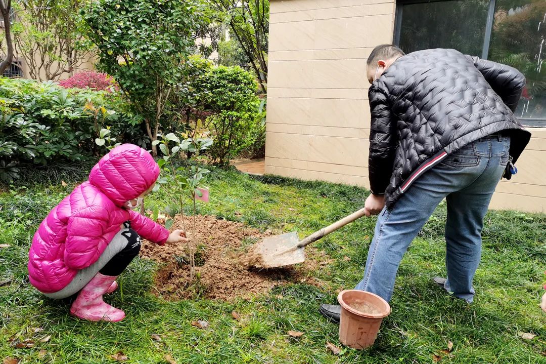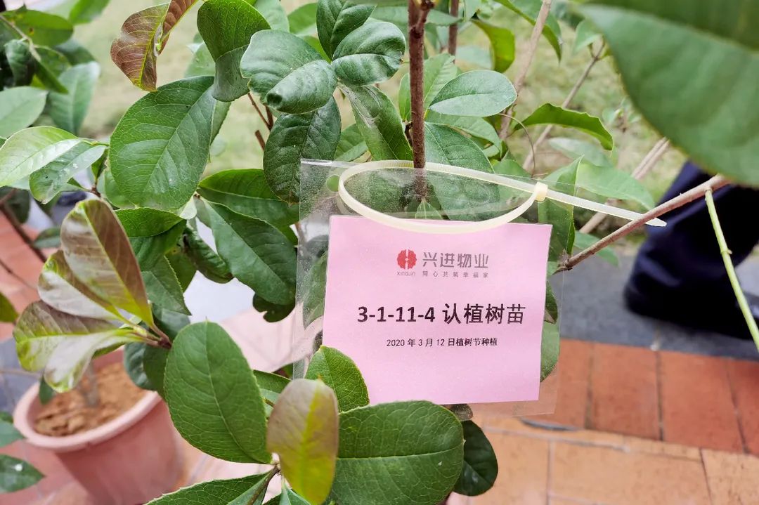 一同在小区园区种下绿植并为其挂牌