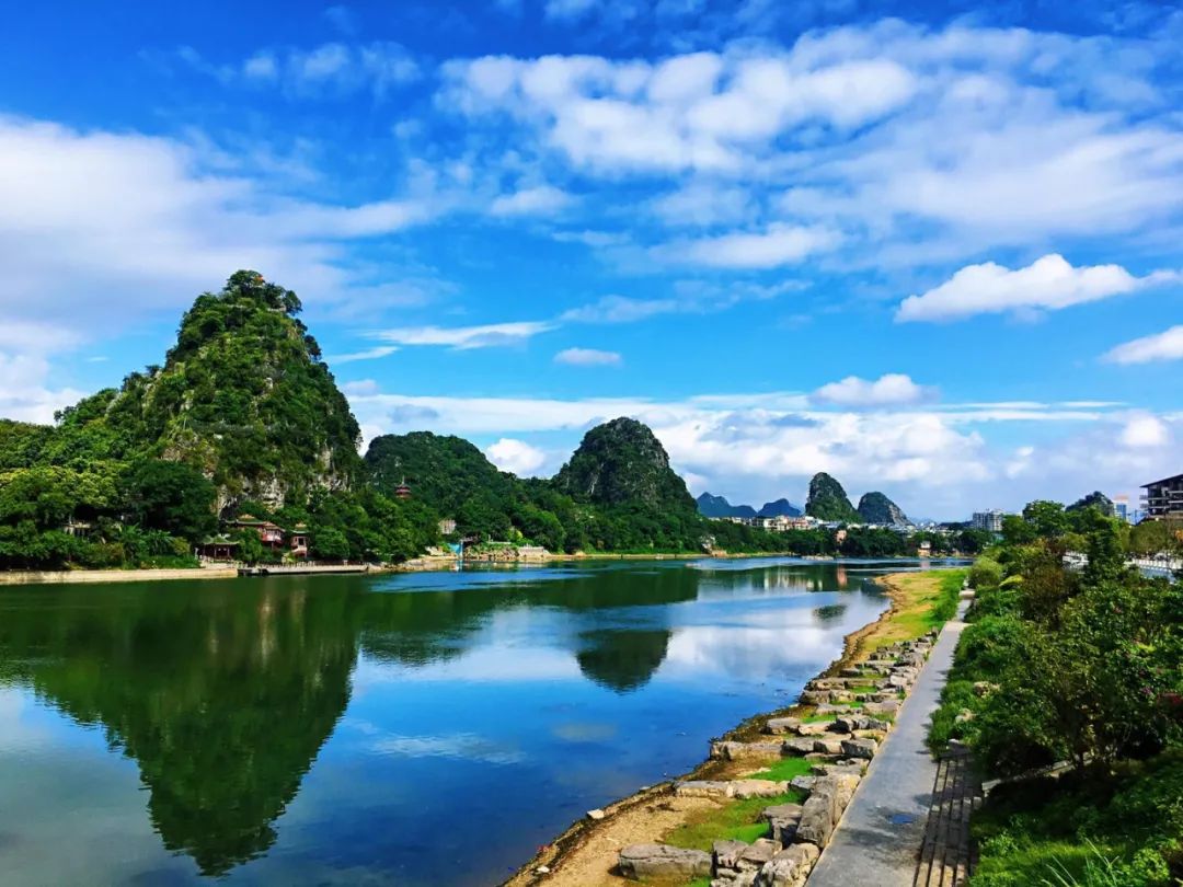 靖江王府贵脉之上,,,漓江与小东江汇合之处,,,玉带围绕,,,青绿潜在,,,让人不经感伤,,,《千里山河图》不但仅在画中,,,也在漓江最美1公里之上。。。。。